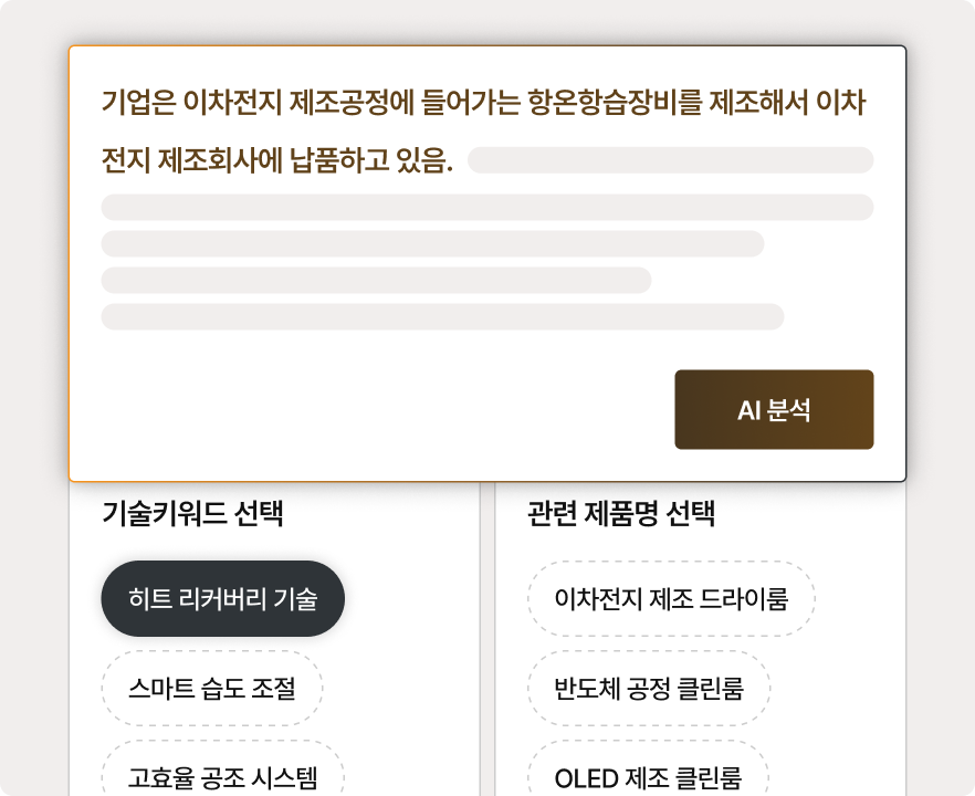 기술 내용을 자유롭게 입력하면 AI가 키워드를 분석하여